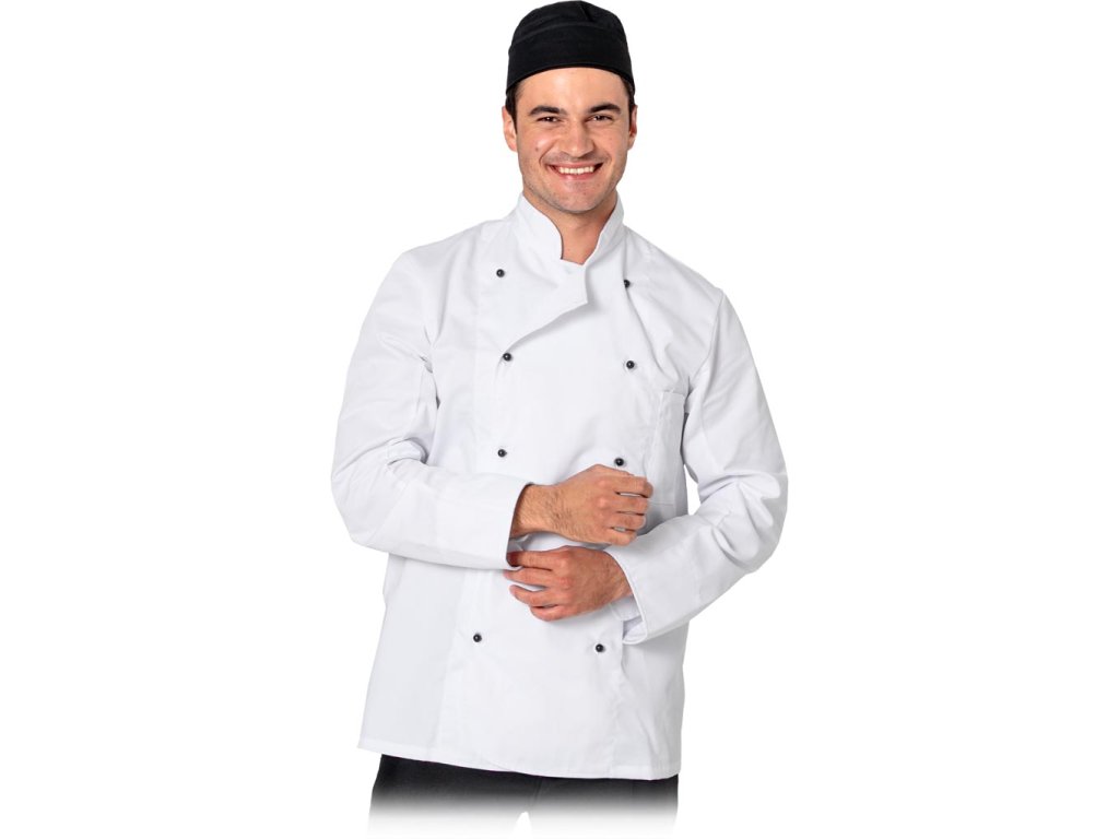 Kuchárska bunda do kuchyne. - 65% polyester, 35% bavlna - hmotnosť 245 g/m² - Vhodné na priemyselné pranie (maximálna teplota 95°C) - Parametre tkaniny zvyšujú účinnosť odstraňovania škvŕn - Stojací golier - Dva rady vymeniteľných tlačidiel LH-BUTTON na prednej strane - Dostupné v niekoľkých farbách - Dlhé vrecko na ľavej hornej strane - Rukávy s malými rozparkami, ktoré po vyhrnutí vytvárajú elegantnú manžetuDodatočné parametre