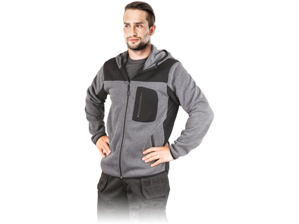 Ochranná mikina s kapucňou. - Tkanina: 100% polyester - Gramáž: 260 g/m² - Zapínanie na zips - Tri vonkajšie vrecká na zips: dve na bokoch a jedno na vrchu - Rukávy, kapucňa a spodný lem zakončené elastickým lemom, ktorý nielen jemne sťahuje, ale aj zdobíDodatočné parametre
