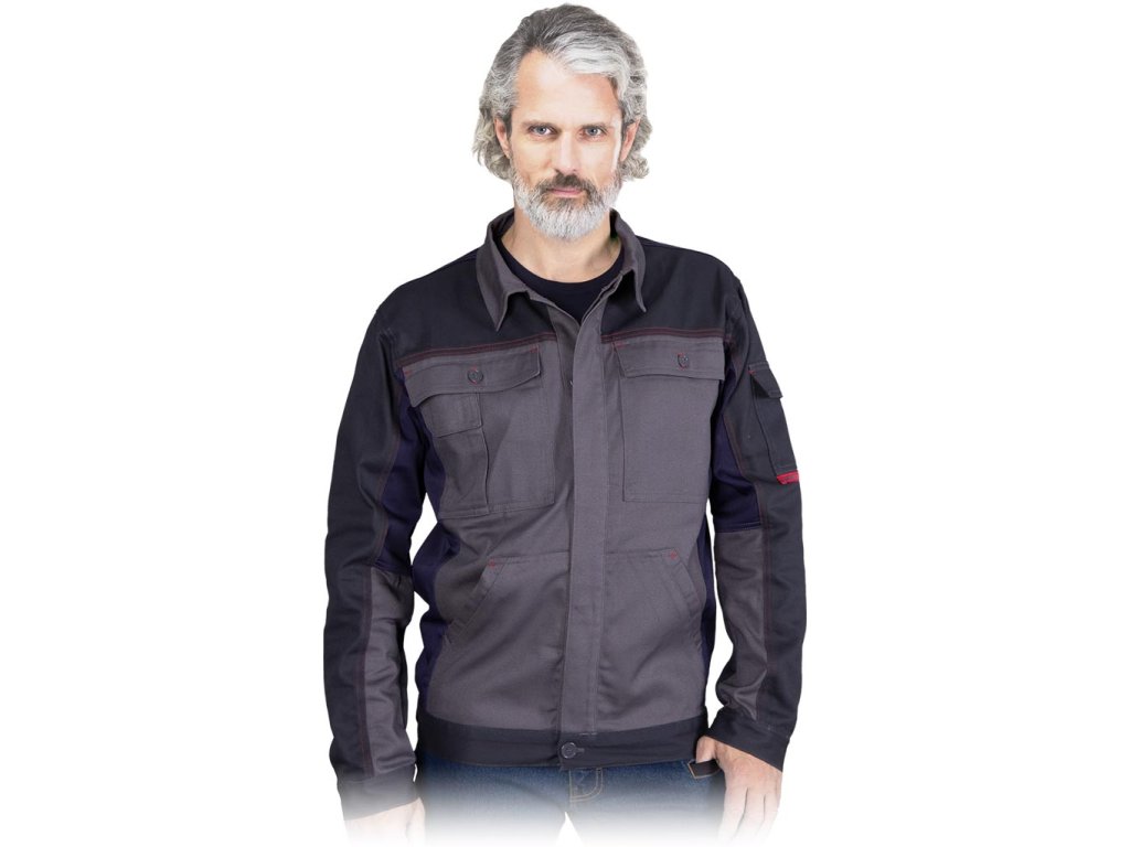 Ochranná bunda BOMER. - Materiál: 100% bavlna, 260 g/m² - Námornícka modrá vsadka vyrobená zo 62 % polyesteru, 34 % bavlny, 4 % elastanu, 240 g/m² - Golier a manžety na gombíky - Golier na krku - Tri náprsné vrecká, dve s gombíkmi a jedno so zapínaním na suchý zips - Dve spodné bočné vrecká - Ďalšie vrecko na ľavom rukáveDodatočné parametre