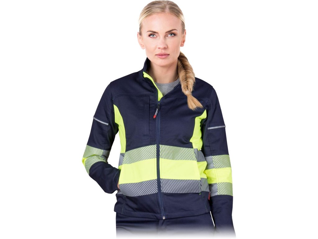 Dámska pružná ochranná mikina FRAUBAX. - 62 % polyester, 34 % bavlna, 4 % elastan (spandex) s hmotnosťou 240 g/m² - Kontrastné vložky vyrobené zo 65% polyesteru, 35% bavlny s hmotnosťou 210 g/m² - Zapínanie na zips - Stojací golier - Náprsné vrecko na zips - Dve spodné bočné vrecká so zipsom - Reflexné prvky na ramenách - Segmentované reflexné pásiky pre lepšiu viditeľnosť - Testované na škodlivé látky podľa OEKO-TEX® Standard 100Dodatočné parametre