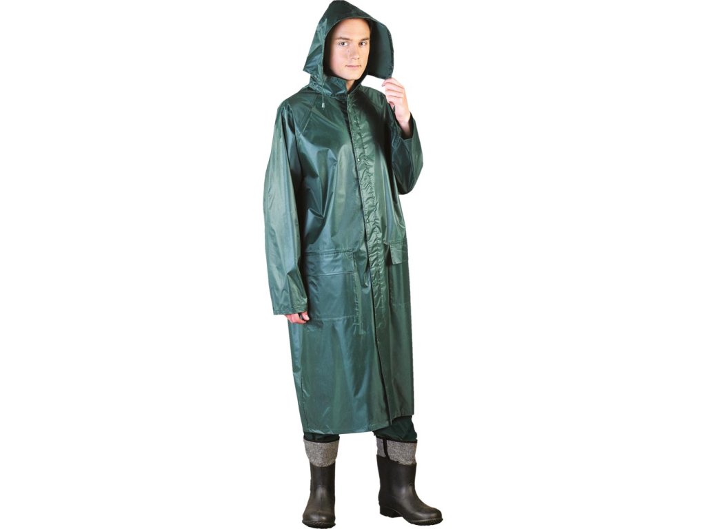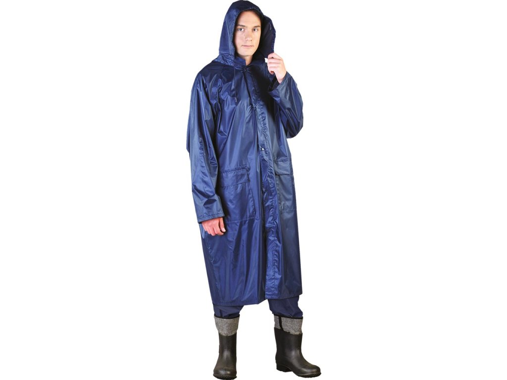Pánska ochranná pláštenka. - Látka: 100% polyester s PVC záterom na vnútornej strane - Gramáž: 160g/m² - Zapínanie na zips s dodatočným zaklapnutím - Stojací golier - Kapucňa so sťahovacími šnúrkami, ktoré sa dajú zrolovať a zložiť do goliera - Dve spodné vrecká s chlopňami - Rukávy so zapínaním na patentky - Ventilačný systém na chrbte a pod pazuchami umožňuje cirkuláciu vzduchu a zvyšuje pohodlie - Švy dodatočne podlepené na vnútornej strane, aby sa zabránilo vniknutiu vody - Balené vo vrecúšku s rozmermi: 34x26x3,5 cmDodatočné parametre