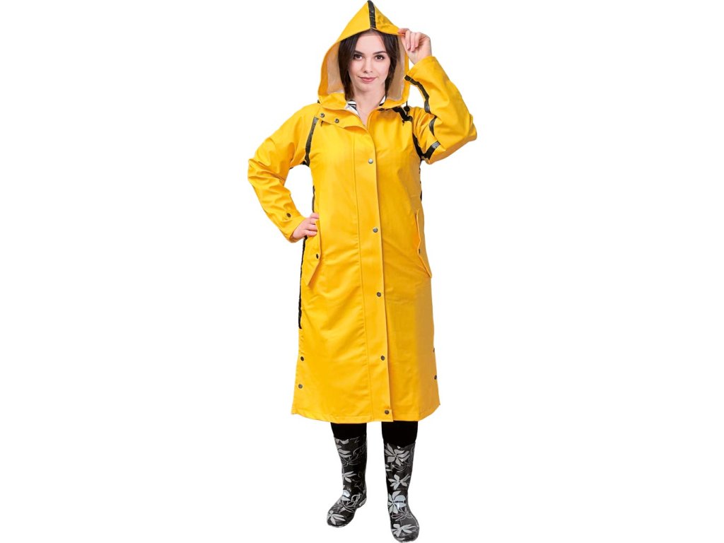 Dámsky pršiplášť s kapucňou. - Poťah: 65% PU/PVC, 35% polyester - Podšívka: 100% polyester 210T taft - Zapínanie na zips s dodatočnými patentkami - Kapucňa so sťahovacími šnúrkami - Dve vonkajšie vrecká - Rukávy so zapínaním na patentky pre nastaviteľnú šírku a vynikajúcu ochranu pred dažďom - Švy dodatočne podlepené na vnútornej strane, aby sa zabránilo vniknutiu vodyDodatočné parametre