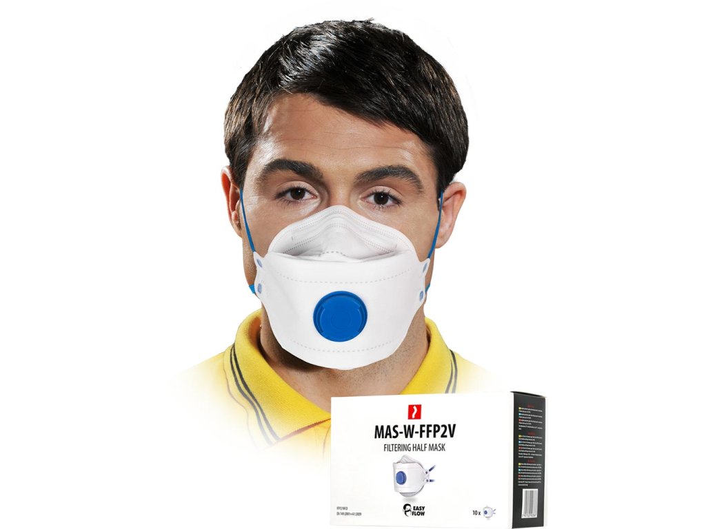 Respirátor proti prachu s ventilom.- Typ FFP2: Ochrana pred netoxickými alebo stredne toxickými kvapalnými alebo pevnými aerosólmi (napr. olejová hmla) v koncentráciách 12,5xOEL alebo 10xAPF (OEL)