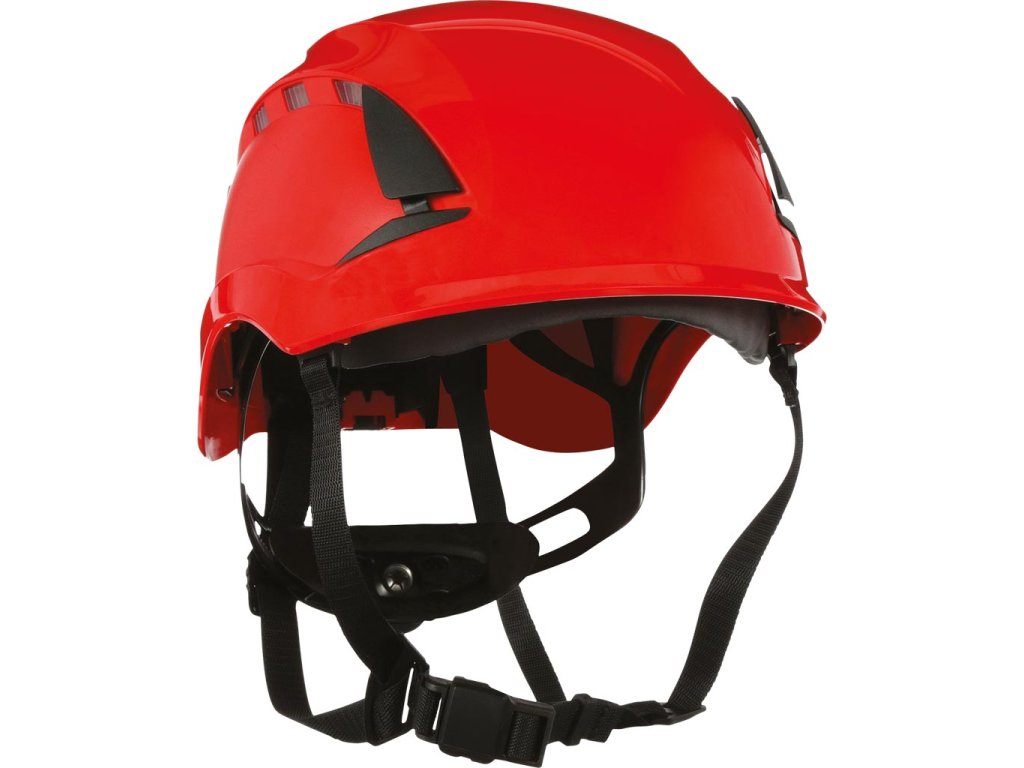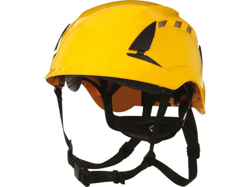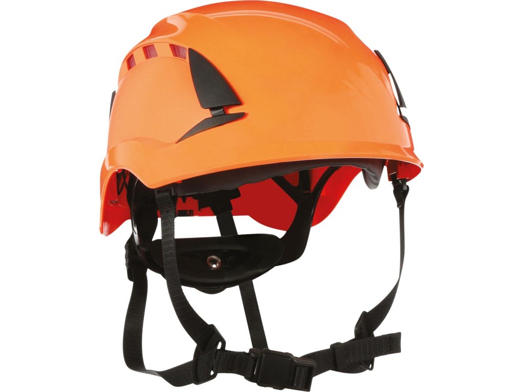 Bezpečnostná prilba SecureFit X5000 s ventiláciou, 1000V. - Bezpečná a pohodlná ochrana hlavy pre prácu vo výškach a iné nebezpečné priemyselné úlohy - Postroj využíva patentovanú technológiu 3M™ Pressure Diffusion - Unikátny 3M systém so 4-bodovým podbradníkom obsahuje vypínač - 6-bodový pás so skrutkovým nastavením umožňuje viacnásobné vertikálne nastavenie, čím zaisťuje lepšie uchytenie - Magnetické zatváranie je štandardné - Dizajn krátkeho vrcholu prilby, inšpirovaný horolezeckými prilbami, zaisťuje dobrú viditeľnosť smerom nahor - Sloty a spony na príslušenstvo umožňujú použiť štíty na tvár, chrániče sluchu a ďalšie príslušenstvo 3M - Patentovaný UV indikátor pomáha určiť, kedy je potrebné prilbu vymeniť z dôvodu nadmerného opotrebovania vplyvom UV žiarenia - Spĺňa požiadavky na odolnosť proti bočnej deformácii (LD). - UV stabilizovaný ABS - Na použitie v stavebníctve, ropnom a plynárenskom priemysle, lesníctve a sektore verejných služieb - Elektricky izolovaný - to znamená, že nemá žiadne reflektory, žiadne kovové časti a je označený 1000V (dvojitý trojuholník) - Unikátny 4-bodový remienok na bradu s EN štandardným prepínačom umožňuje prepínať medzi EN 12492 a EN 397 - Spĺňa EN 12492 alebo EN 397 (nemôže spĺňať obe normy súčasne) a EN50365Dodatočné parametre
