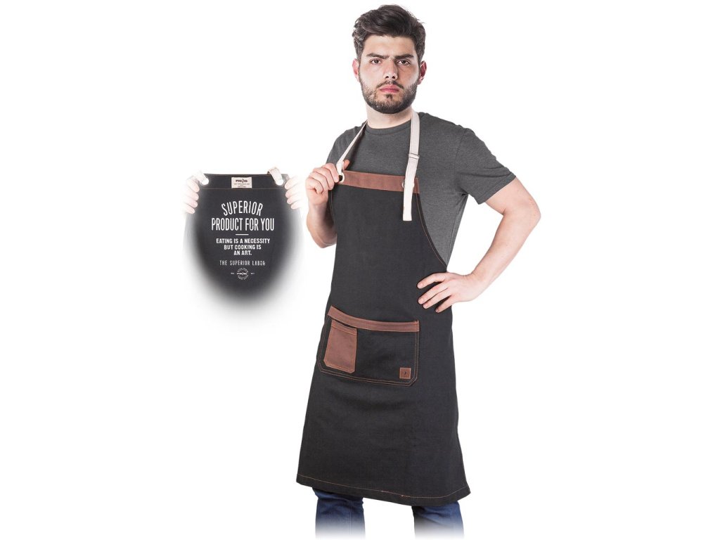 Ochranná zástera s predným panelom. - 100% bavlnené plátno - Hmotnosť: 440-450 g/m² - Rozmery: 88 x 91 cm - Zaväzovanie vzadu pre lepšie prispôsobenie - Zapína sa na sponu pri krku pre nastaviteľnú dĺžku - Dve predné vrecká - Možno prať v práčke do 40°CDodatočné parametre