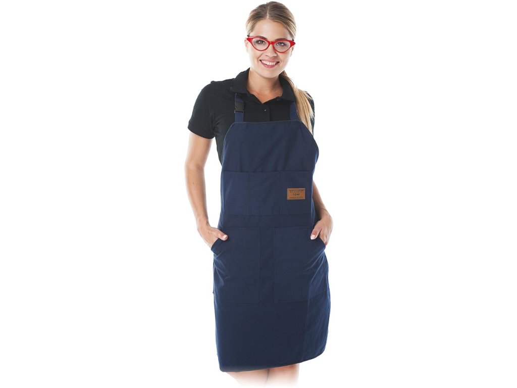 Dámska ochranná zástera s predným panelom. - 100% bavlnené plátno - hmotnosť 300 g/m² - Rozmery: 85 x 60 cm - Zaväzovanie vzadu pre lepšie prispôsobenie - Zapína sa na sponu pri krku pre nastaviteľnú dĺžku - Dve bočné vrecká a ďalšie vrecko v hornej časti - Ideálne pre záhradníctvoDodatočné parametre