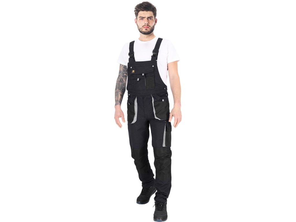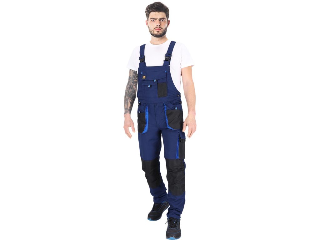 OGR ochranné montérky, pánske. - Hlavný materiál: 80% polyester, 20% bavlnené plátno, 260 g/m² - Vložky: 100% polyester 600D Oxford tkanina, 200 g/m² - Zapínanie na zips s chlopňou - Dvojité náprsné vrecko so zapínaním na suchý zips a ďalšie priehradky - Dve dvojité bočné vrecká s priehradkami a dve zadné vrecká so zapínaním na suchý zips - Dve vrecká na nohách, vrátane jedného na náradie - Vrecká na chrániče kolien, vložené zospodu - Dĺžka nastaviteľná trakmi, ktoré majú vzadu aj gumičku - Elastický pás vzadu a gombíky pre lepšie prispôsobenie - Klip na kľúče - Slučka na kladivo na ľavej nohe - štýl: REGULARDodatočné parametre
