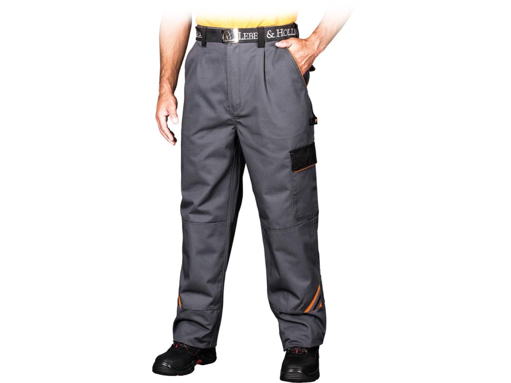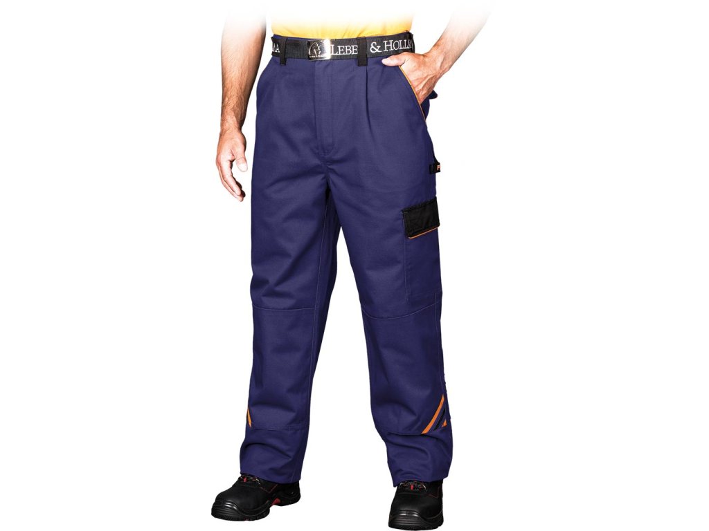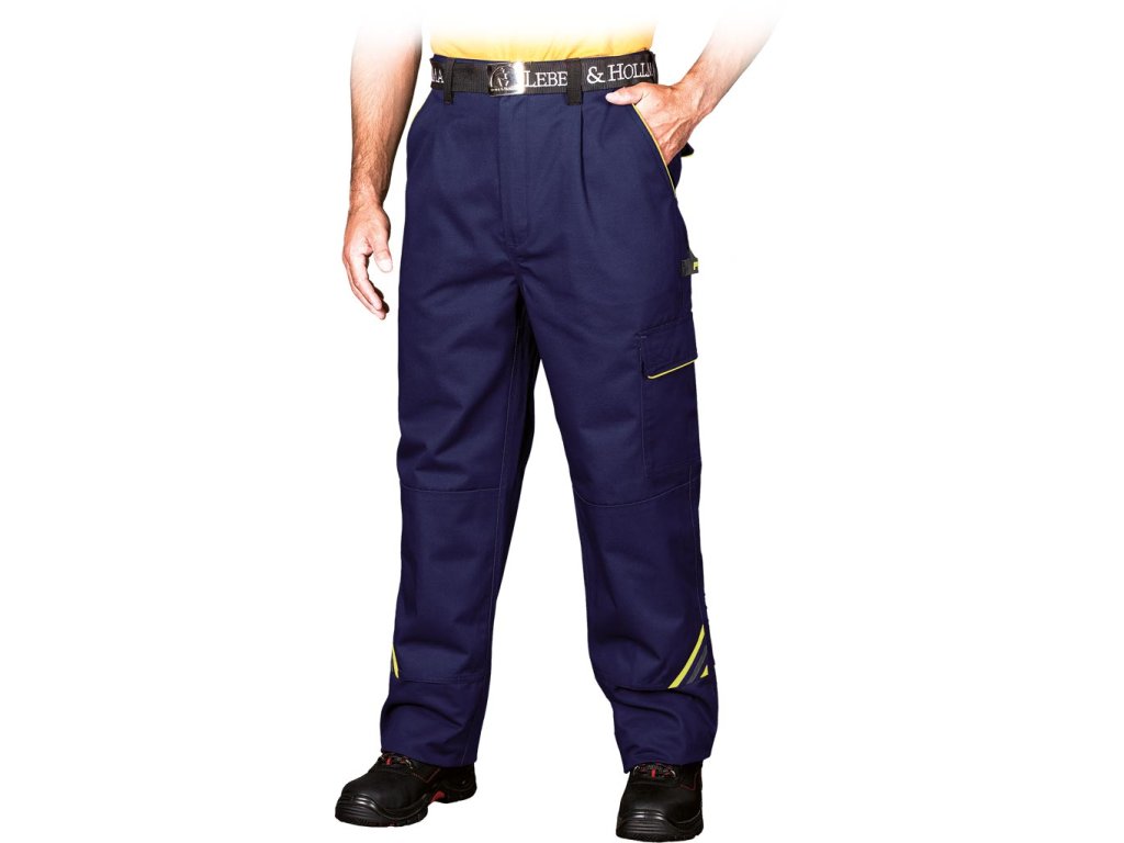 Pánske ochranné nohavice do pása. - Materiál: 65% polyester, 35% bavlna - Gramáž: 300 g/m² - Žlté a oranžové vložky vyrobené z 80% polyesteru, 20% bavlny - Zapínanie na gombík a zips - Dve zadné vrecká na suchý zips a dve bočné vrecká - Jedno vrecko na nohe so suchým zipsom na príslušenstvo a jedno dlhé bočné vrecko - Elastický pás vzadu pre väčšiu voľnosť pohybu a lepšie prispôsobenie - Vrecká na podkolienky na kolenách - Klip na kľúčeDodatočné parametre