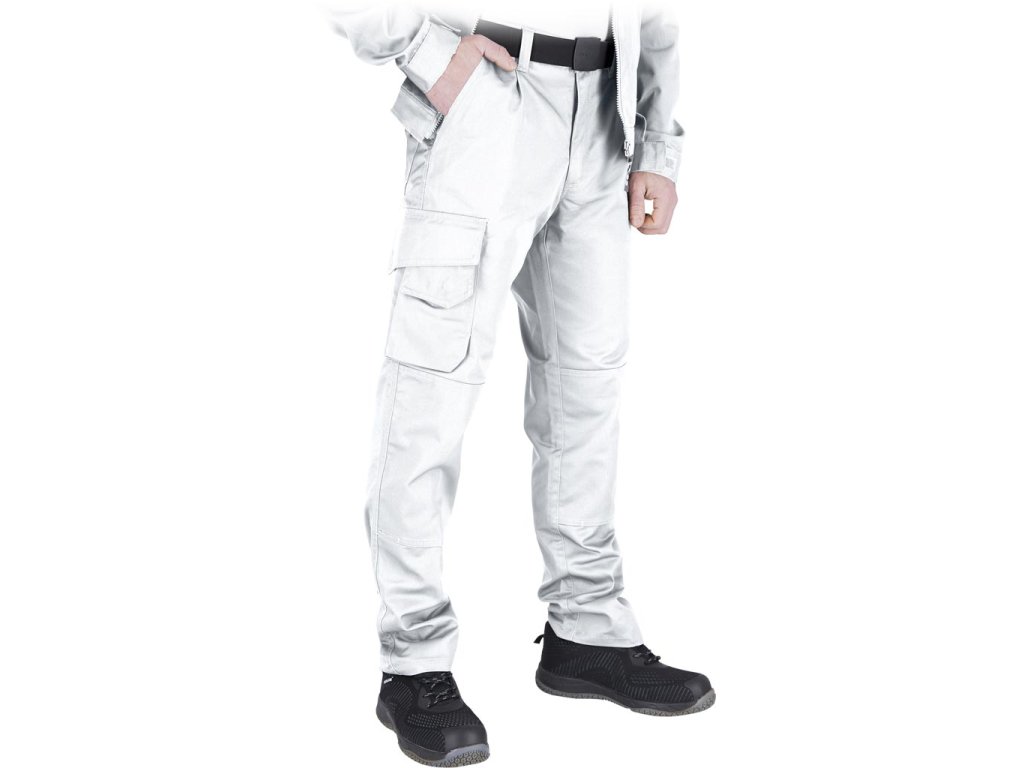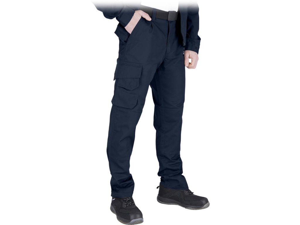 Pánske ochranné nohavice do pása. - keprová tkanina: 65% polyester, 35% bavlna - hmotnosť: 270 g/m² - zapínanie na gombík a zips - dve bočné vrecká a dve zadné vrecká so zapínaním na patentky - tri vrecká na nohách, vrátane jedného dlhého vrecka s priehradkami - vrecká na chrániče kolien so spodným vstupom - klip na kľúče - strih: REGULARDodatočné parametre