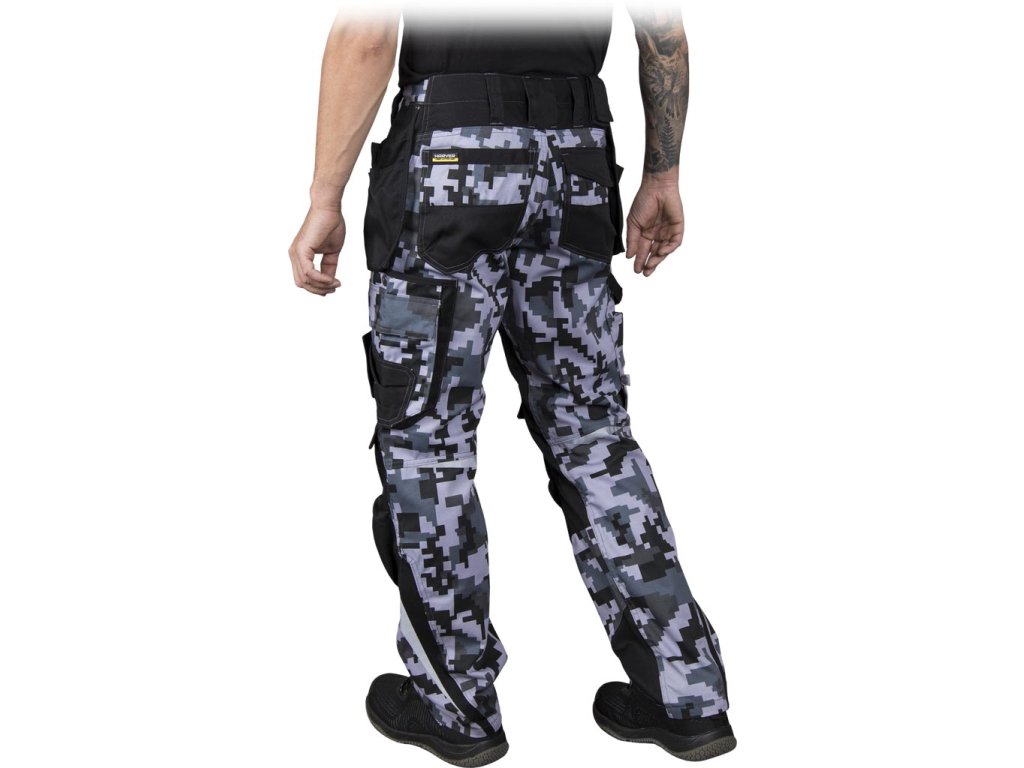 Ochranné nohavice v páse HARVER. - Materiál: 65% polyester, 35% bavlna - Gramáž: 290 g/m² - Zapínanie na gombík a zips - Štyri bočné vrecká vrátane dvoch našitých vreciek - ideálne na uloženie náradia - Dve zadné vrecká, vrátane jedného so zapínaním na suchý zips - Vrecká na nohách, vrátane vrecka na mobil - Klip na kľúče - Vrecká na kolená so zapínaním na suchý zips na kolenách - Reflexné prvky - Tvar "S" - predtvarované nohy poskytujú lepšie prispôsobenie - Testované na škodlivé látky podľa OEKO-TEX® Standard 100Dodatočné parametre