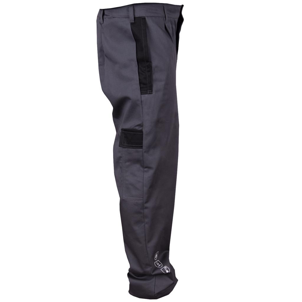 Antistatické, nehorľavé ochranné nohavice UMV-2, ktoré chránia pred kvapalnými chemikáliami. - 87 % bavlna, 12 % nylon, 1 % uhlíkové vlákno - gramáž 270 g/m² - nohavice po pás so zapínaním na gombíky - dve bočné vrecká a ďalšie vrecko na pravej nohavici - elastický pás vzadu na nastavenie - určené na prácu v prostrediach, ktoré vyžadujú schopnosť odvádzať elektrostatický náboj, aby sa zabránilo zápalným výbojom, a kde existuje riziko: vznietenia v dôsledku krátkodobého kontaktu s plameňom, tepelného žiarenia a striekania roztaveného železa - spĺňajú normy EN ISO 13688, EN 1149-5, EN ISO 11612 (A1 A2 B1 C1 E3 F1) a EN 13034 (typ PB [6])Dodatočné parametre