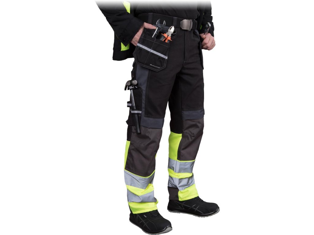 Ochranné nohavice HAYER z plátna do pása. - Hlavná tkanina: 100% bavlna, 345 g/m² - Fluorescenčné žlté vložky: 86 % polyester, 14 % bavlna, 300 g/m² a sivé vložky: 80 % polyester, 20 % bavlna, 290 g/m² - Vrecká na podkolenky a spevnenie spodnej časti nôh: 100% polyester Oxford, 215 g/m² - Zapínanie na gombík a zips - Štyri bočné vrecká vrátane dvoch všitých vreciek - ideálne na uloženie náradia - Dve zadné vrecká - Odnímateľné vrecko na ID - vrecká na nohách, vrátane vrecka na mobil - Klip na kľúče - Vrecká na chrániče kolien so zapínaním na suchý zips - Reflexné pruhy poskytujú lepšiu viditeľnosť - Spĺňa požiadavky normy EN ISO 20471 (trieda 1)Dodatočné parametre