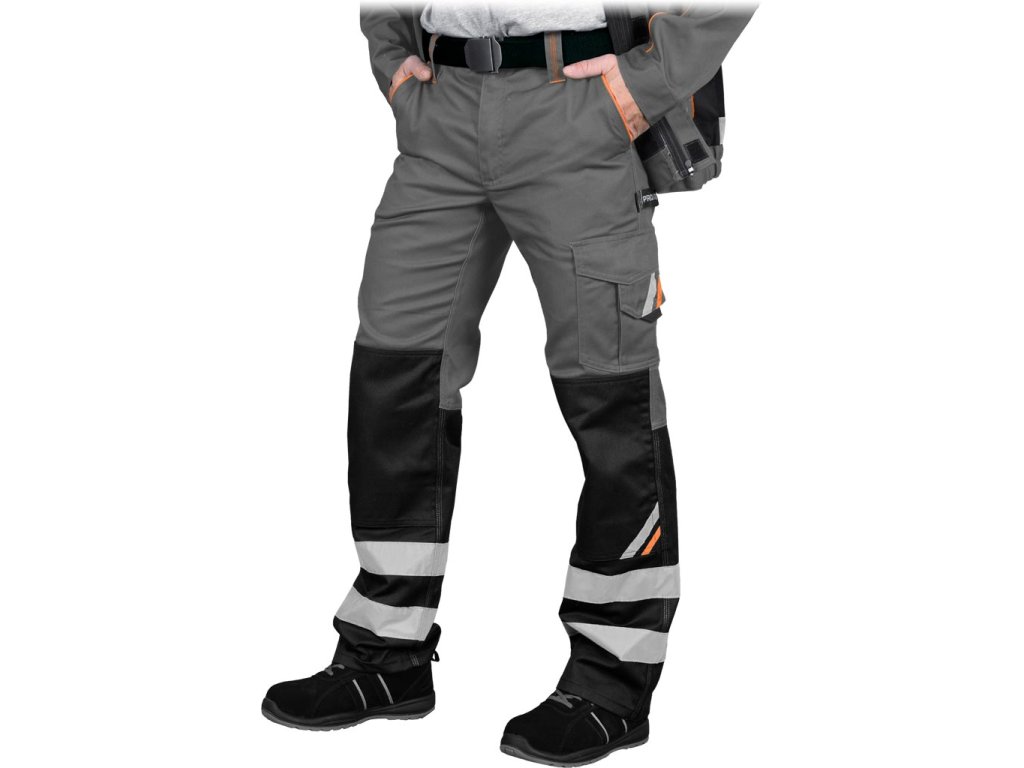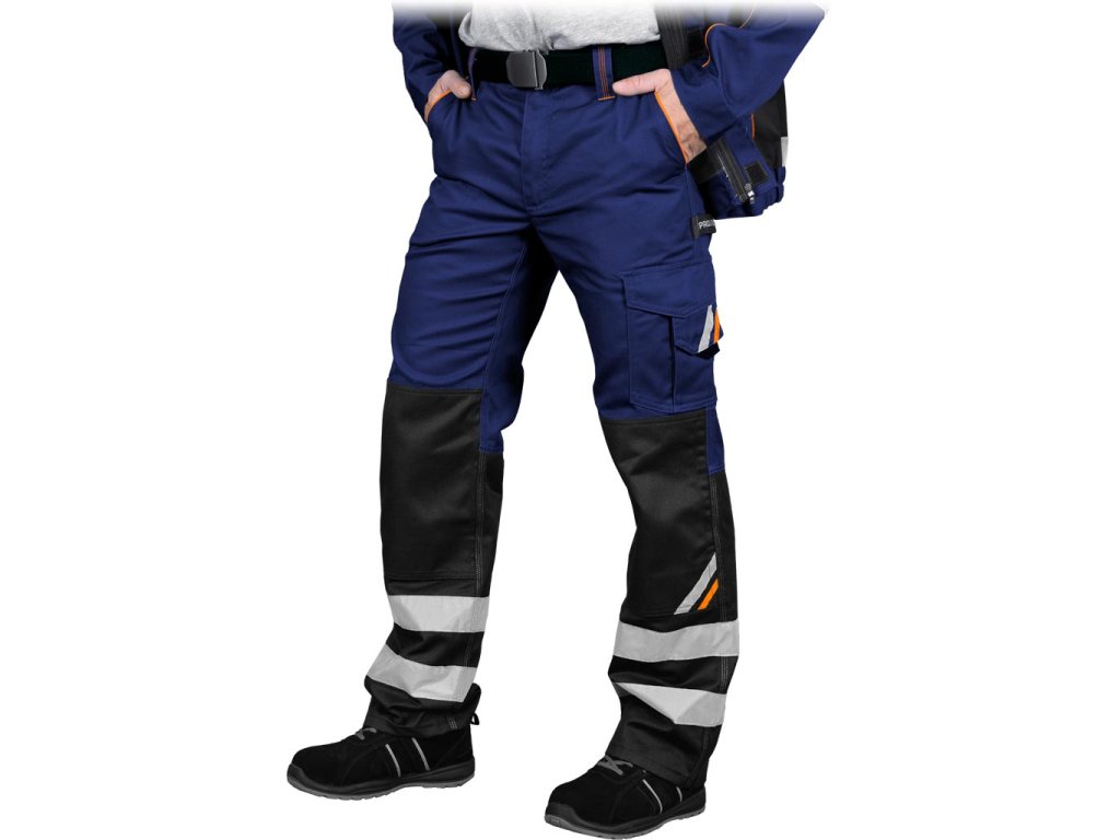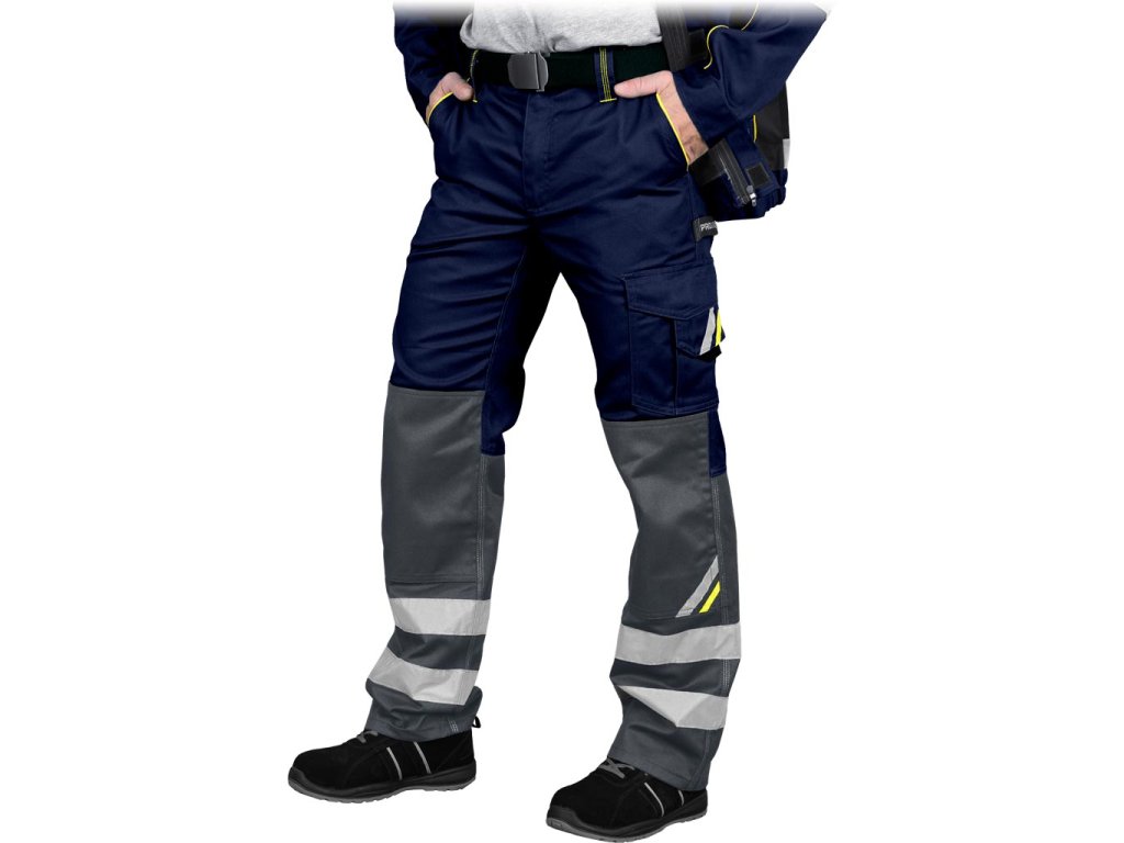 Pánske ochranné nohavice PROM do pása. - Materiál: 65% polyester, 35% bavlna, 290 g/m² - Žlté a oranžové vložky vyrobené z 80% polyesteru, 20% bavlny - Zapínanie na gombík a zips - Dve bočné vrecká vrátane jedného dvojitého vrecka a dvoch zadných vreciek so zapínaním na suchý zips - Dve vrecká na nohách so zapínaním na suchý zips a dve dlhé vrecká na náradie - Vrecká na chrániče kolien so spodným vstupom - Elastický pás vzadu a gombíky pre lepšie prispôsobenie - Klip na kľúče - Reflexné pásiky pre zvýšenú viditeľnosť - Spĺňa požiadavky EN ISO 20471* (pre remene) a EN ISO 13688Dodatočné parametre