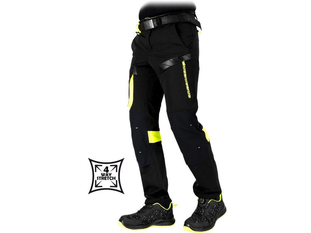 Pánske ochranné nohavice do pása. - Hlavný materiál: 4-smerne strečová tkanina 90% nylon, 10% elastan, 260 g/m² - Kontrastné vložky: 80% polyester, 20% bavlna, satén, 280 g/m² - Kolenné vložky: 90 % nylon, 10 % elastan, 260 g/m² rip-stop tkanina - Ďalšie vložky na dolných končatinách a dlhé vrecko: 100% nylonová Oxford tkanina, 210 g/m² - 4-way stretch - materiál, ktorý sa natiahne do všetkých strán - Zapínanie na gombík a zips - Dve bočné vrecká a dve zadné vrecká so zipsom - Vrecká na nohách, vrátane jedného na zips a jedného dvojitého dlhého vrecka s pútkami Pripojte ďalšie príslušenstvo - Zospodu plnené vrecká na chrániče kolien so zapínaním na suchý zips - Predtvarované kolená - Elastický pás na bokoch pre lepšie prispôsobenie - Klip na kľúče - Úzky strihDodatočné parametre