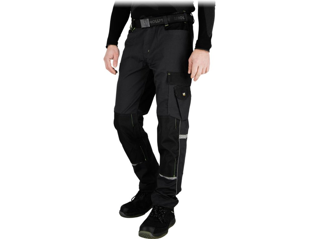 Pánske ochranné nohavice do pása. - Hlavný materiál: 62 % bavlna, 35 % polyester, 3 % elastan keprová tkanina, 260 g/m² - Vložky pod kolená: 100% polyester 600D Oxford tkanina, 230 g/m² - Zapínanie na gombík a zips - Dve bočné vrecká a dve zadné vrecká, vrátane jedného so zapínaním na suchý zips - Vrecká na nohách, vrátane jedného dvojitého zapínania na suchý zips a jedného pozdĺžneho vrecka s priehradkami - Zospodu plnené vrecká na chrániče kolien - Predtvarované kolená - Elastický pás na bokoch pre lepšie prispôsobenie - Prídavné pútko na suchý zips - Klip na kľúče - Slučka na kladivo na ľavej nohe - Reflexné prvky - Fit: REGULARDodatočné parametre