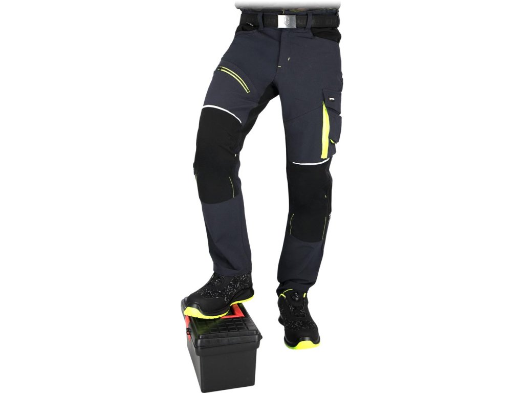Pánske ochranné nohavice do pása. - Materiál: 90% nylon, 10% elastan - Gramáž: 260 g/m² - Zapínanie na gombík a zips - Dve bočné vrecká a dve zadné vrecká, vrátane jedného so zapínaním na suchý zips - Vrecká na nohách, vrátane jedného dvojitého vrecka na suchý zips, jedného vrecka na zips a jedného pozdĺžneho vrecka - Elastický pás na bokoch pre lepšie prispôsobenie - Predtvarované kolená - Klip na kľúče - Reflexné prvky - Fit: REGULARDodatočné parametre