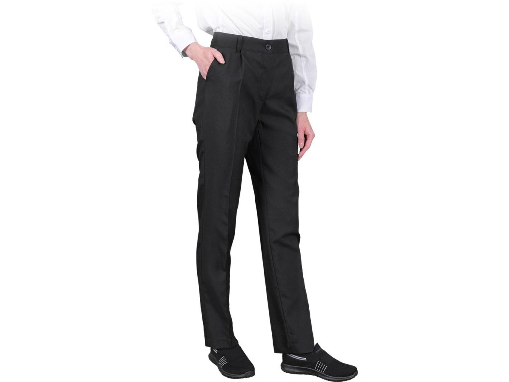 Elegantné skladané nohavice do pása pre ženy. - Tkanina: 100% polyester - Gramáž: 165 g/m² - Zapínanie na gombík a zips - Tri vrecká: dve bočné vrecká a jedno zadné vrecko s gombíkom - Testované na škodlivé látky podľa OEKO-TEX® Standard 100 - Možno prať do 40°CDodatočné parametre