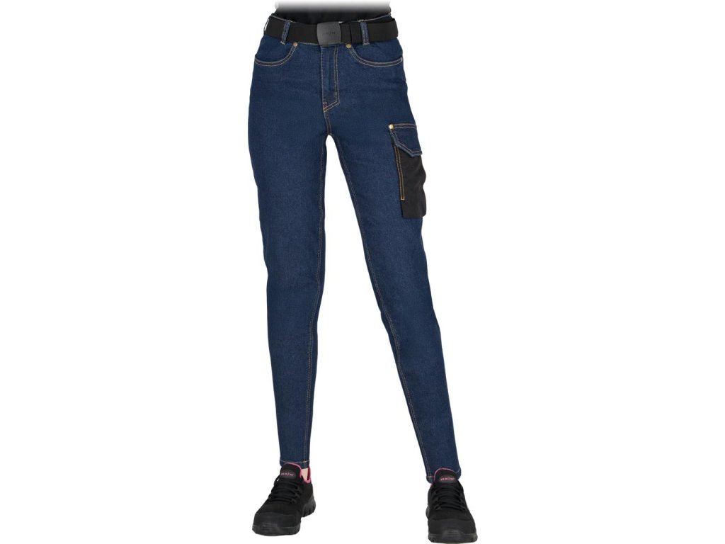 Dámske elastické ochranné nohavice do pása. - Hlavný materiál: 78% bavlna, 20% polyester, 2% elastan denim, 330 g/m² - Vložky: 100% nylon 500D Cordura tkanina, 210-230 g/m² - Zapínanie na gombík a zips - Dve bočné vrecká a dve zadné vrecká - Dvojité vrecko na nohavici s priehradkamiDodatočné parametre