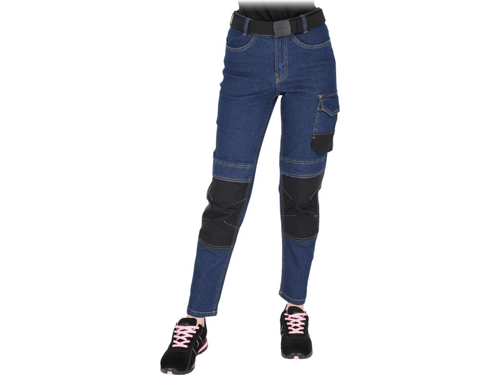 Dámske elastické ochranné nohavice do pása. - Hlavný materiál: 78% bavlna, 20% polyester, 2% elastan denim, 330 g/m² - Vložky: 100% nylon 500D Cordura tkanina, 210-230 g/m² - Zapínanie na gombík a zips - Dve bočné vrecká a dve zadné vrecká - Dvojité vrecko na nohavici s priehradkami - Zhora plnené vrecká na chrániče kolien - Predtvarované kolenáDodatočné parametre