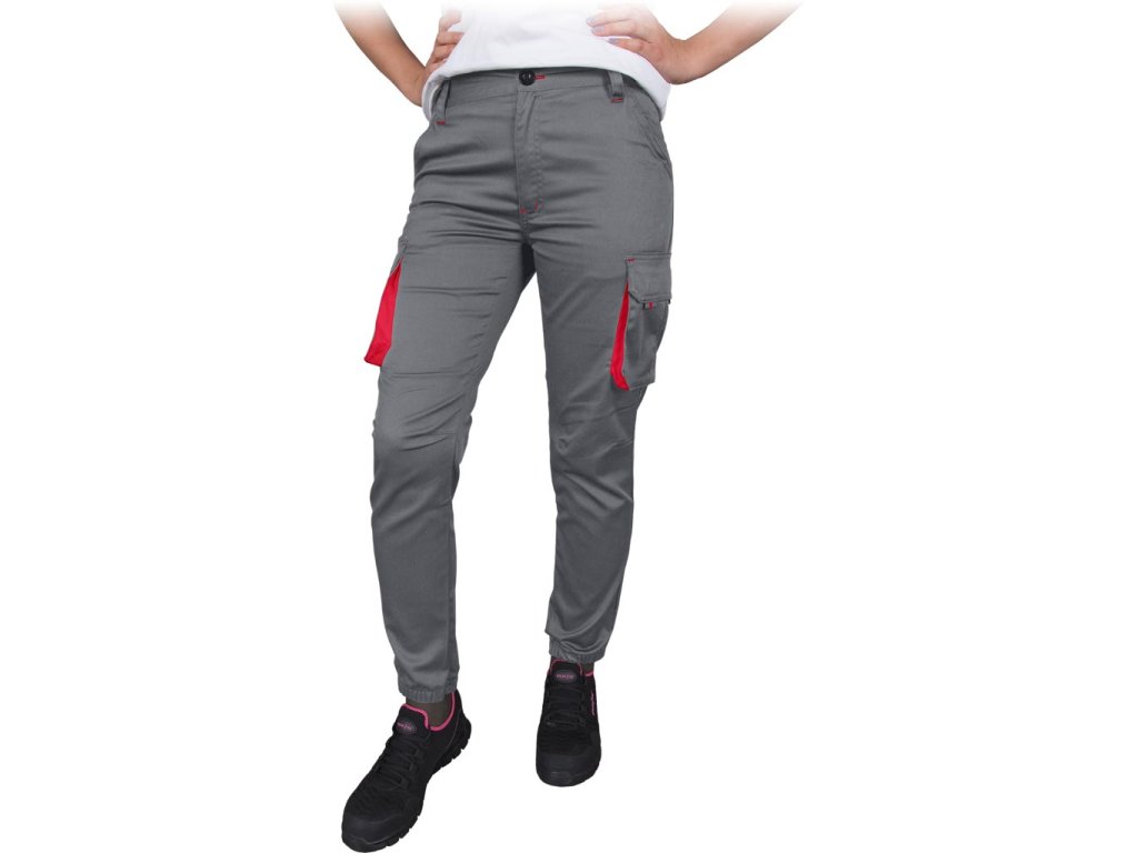 Dámske nohavice FRAU-JOG s elastickým pásom. - Materiál: 62% polyester, 35% bavlna, 3% elastan - Gramáž: 240 g/m² - Zapínanie na gombík a zips - Elastický pás na zadnej strane pre lepšiu voľnosť pohybu a lepšie prispôsobenie - Dve zadné vrecká na suchý zips a dve bočné vrecká - Dve vrecká na nohách - Dodatočné vystuženie vzadu pre zvýšenú odolnosť proti oderu - Elastické manžety na nohách - Vďaka elastanu nohavice lepšie sedia bez obmedzenia pohybu - Testované na škodlivé látky podľa OEKO-TEX® Standard 100Dodatočné parametre