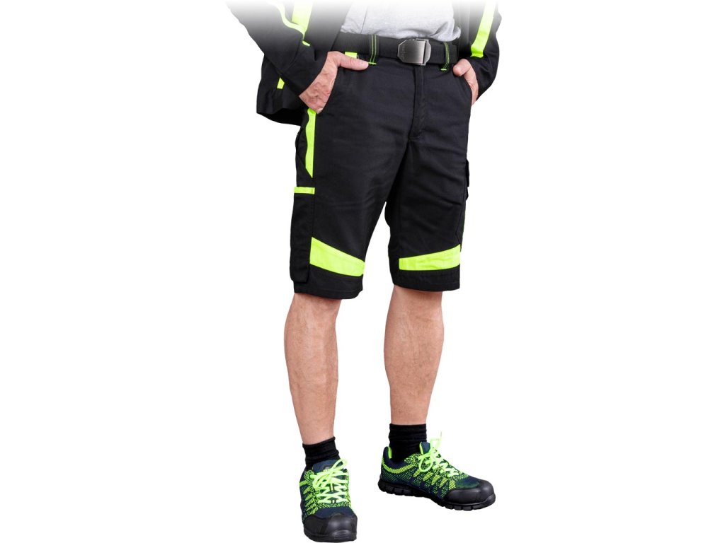TANZO ochranné nohavice do pása s krátkymi nohavicami. - Materiál: 65% polyester, 35% bavlna, 270 g/m² - Kontrastné 65% polyester, 35% bavlna, 195 g/m² vsadky - Tri bočné vrecká, z toho jedno na zips - Dve zadné vrecká so zapínaním na suchý zips - Vrecká na nohách, vrátane vrecka na mobil - Elastický pás pre lepšie prispôsobenie - Klip na kľúče - Slučky na pripevnenie ďalšieho príslušenstva - Módna farebná kombinácia pre atraktívny vzhľadDodatočné parametre