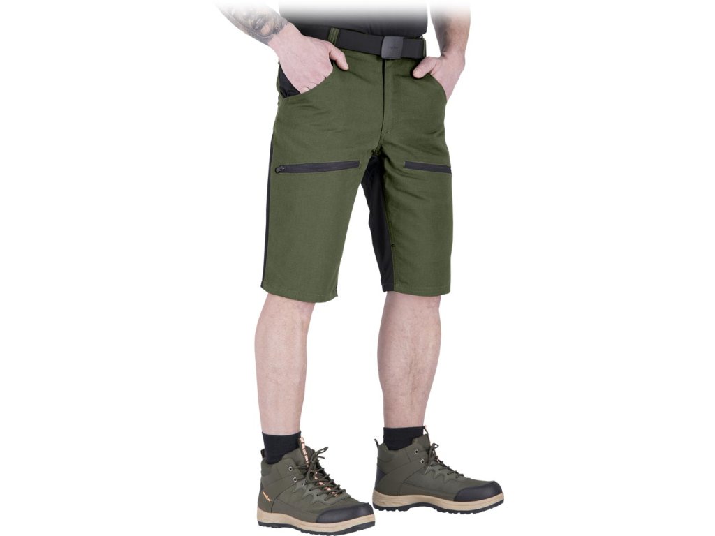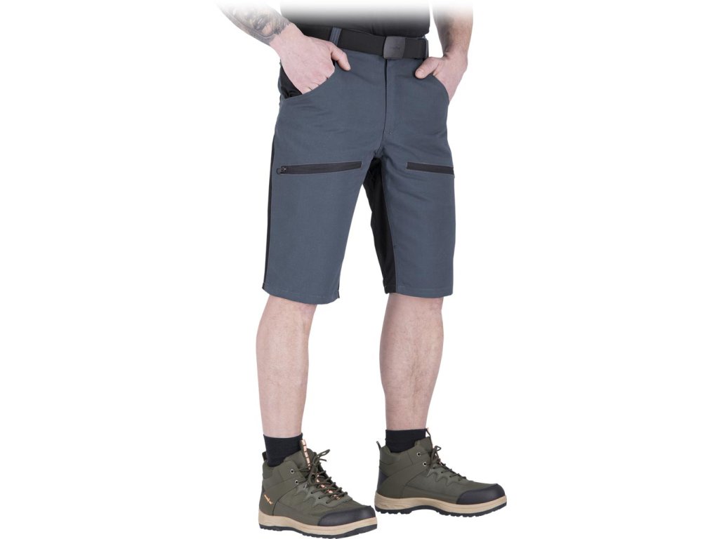 Pánske ochranné nohavice do pása HOBBER s krátkymi nohavicami. - Hlavný materiál: 65% polyester, 35% bavlnené plátno, 260 g/m² - Kolenné panely, horné bočné vrecká a zadný panel: 94 % polyamid, 6 % elastan, strečová tkanina 270 g/m² - Zapínanie na gombík a zips - Dve bočné vrecká a dve zadné vrecká na zips s prídavnými chlopňami - Vrecká na nohavičkách na zips - Elastický pás vzadu pre lepšie prispôsobenie - Ideálne do práce aj na každodenné nosenieDodatočné parametre