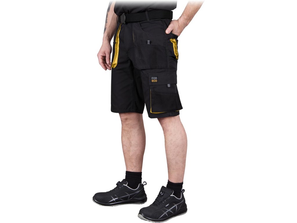 Pánske ochranné nohavice do pása s krátkymi nohavicami. - Hlavný materiál: 80% polyester, 20% bavlna, 260 g/m² - Vložky: 100% polyester 600D Oxford tkanina, 200 g/m² - Zapínanie na gombík a zips - Dve dvojité bočné vrecká s priehradkami a dve zadné vrecká so zapínaním na suchý zips - Dve dvojité vrecká na nohách, vrátane jedného pozdĺžneho vrecka - Elastický pás na bokoch pre lepšie prispôsobenie - Prídavné pútko na suchý zips - Klip na kľúče - Slučka na kladivo na ľavej nohe - Reflexné prvky pre zvýšenú viditeľnosť - Fit: REGULAR - Testované na škodlivé látky v súlade s OEKO-TEX® Standard 100Dodatočné parametre