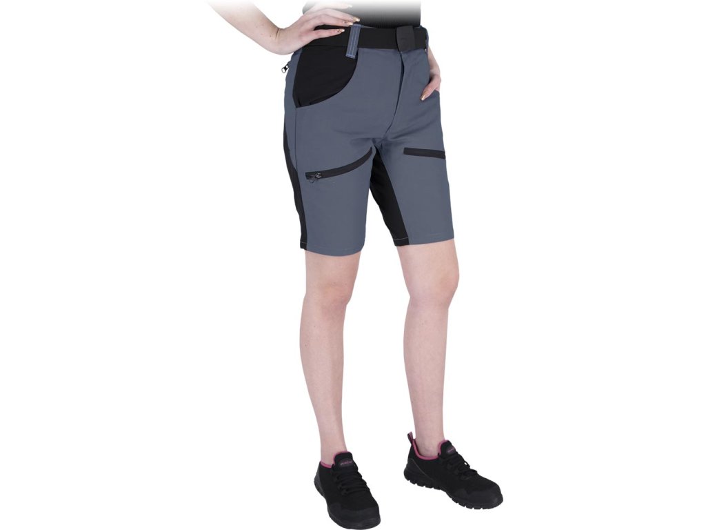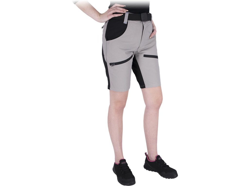 Dámske ochranné nohavice HOBBER do pása s krátkymi nohavicami. - Hlavný materiál: 65% polyester, 35% bavlnené plátno, 260 g/m² - Kolenné panely, horné bočné vrecká a zadný panel: 94 % polyamid, 6 % elastan, strečová tkanina 270 g/m² - Zapínanie na gombík a zips - Dve bočné vrecká a dve zadné vrecká na zips s prídavnými chlopňami - Vrecká na nohavičkách na zips - Elastický pás vzadu pre lepšie prispôsobenie - Ideálne do práce aj na každodenné nosenieDodatočné parametre