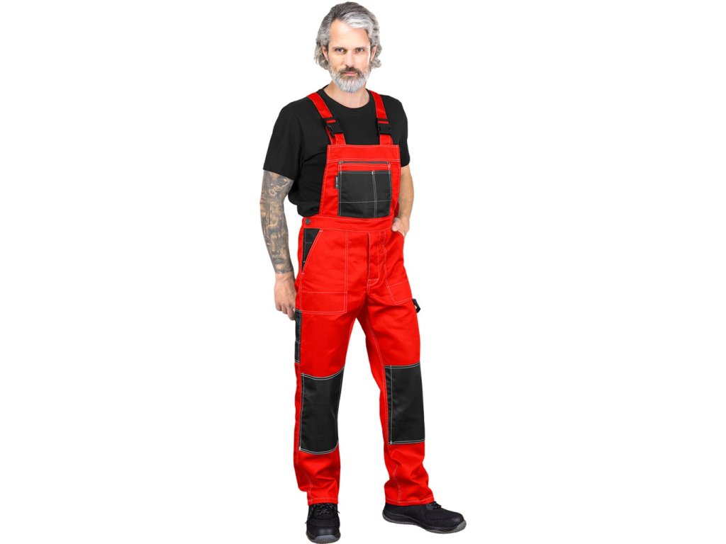 Pánske ochranné montérky Multi Master. - Materiál: 65% polyester, 35% bavlna - Gramáž: 240 g/m² - Zapínanie na gombík s chlopňou - Náprsné vrecko na zips s ďalšími priehradkami - Dve bočné vrecká - Dlhé vrecko na pravej nohavici - Vrecká na chrániče kolien, ktoré možno vložiť zospodu - Dĺžka nastaviteľná trakmi, ktoré majú tiež elastickú zadnú časť - Elastický pás a gombíky pre lepšie prispôsobenie - Slučka na kladivo na ľavej nohe - Fit: REGULARDodatočné parametre