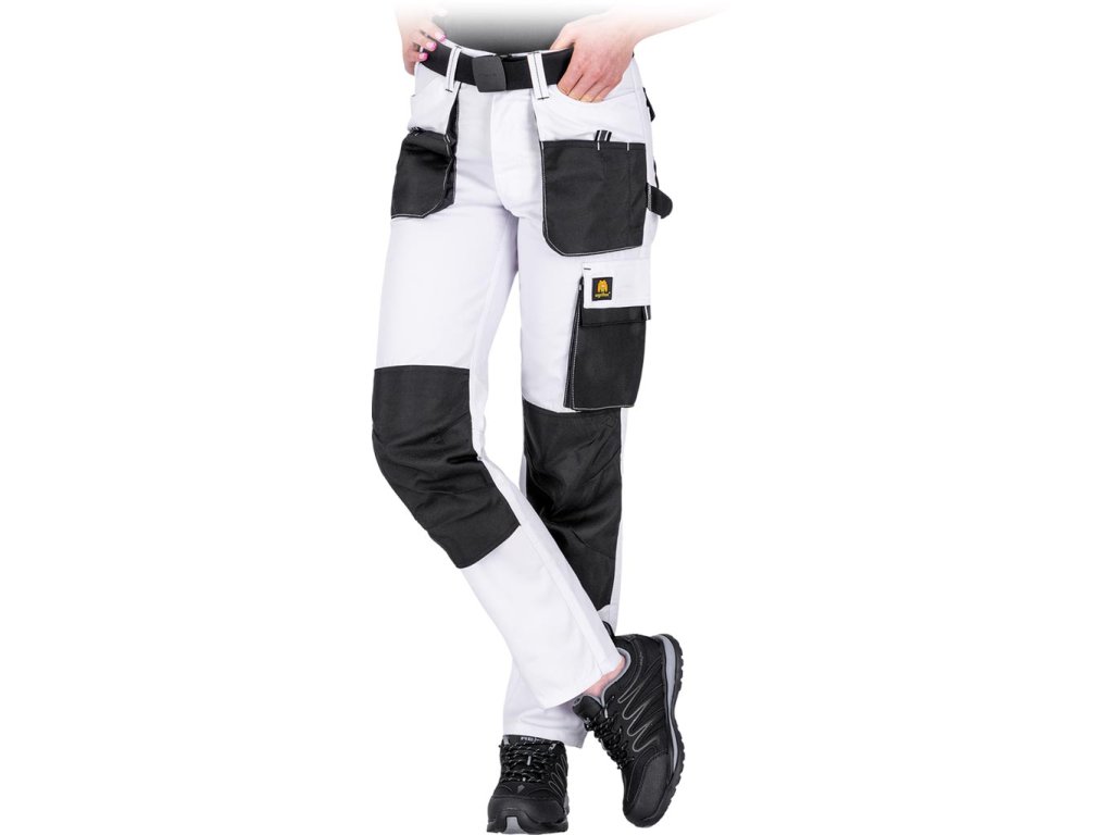 FIO Dámske ochranné nohavice v páse. - Hlavný materiál: 80% polyester, 20% bavlnené plátno, 260 g/m² - Vložky: 100% polyester 600D Oxford tkanina, 200 g/m² - Zapínanie na gombík a zips - Dve dvojité bočné vrecká s priehradkami a dve zadné vrecká so zapínaním na suchý zips - Dve vrecká na nohách, vrátane jedného na náradie - Zospodu plnené vrecká na chrániče kolien - Elastický pás pre lepšie prispôsobenie - Klip na kľúče - Slučka na kladivo na ľavej nohe - Fit: REGULARDodatočné parametre