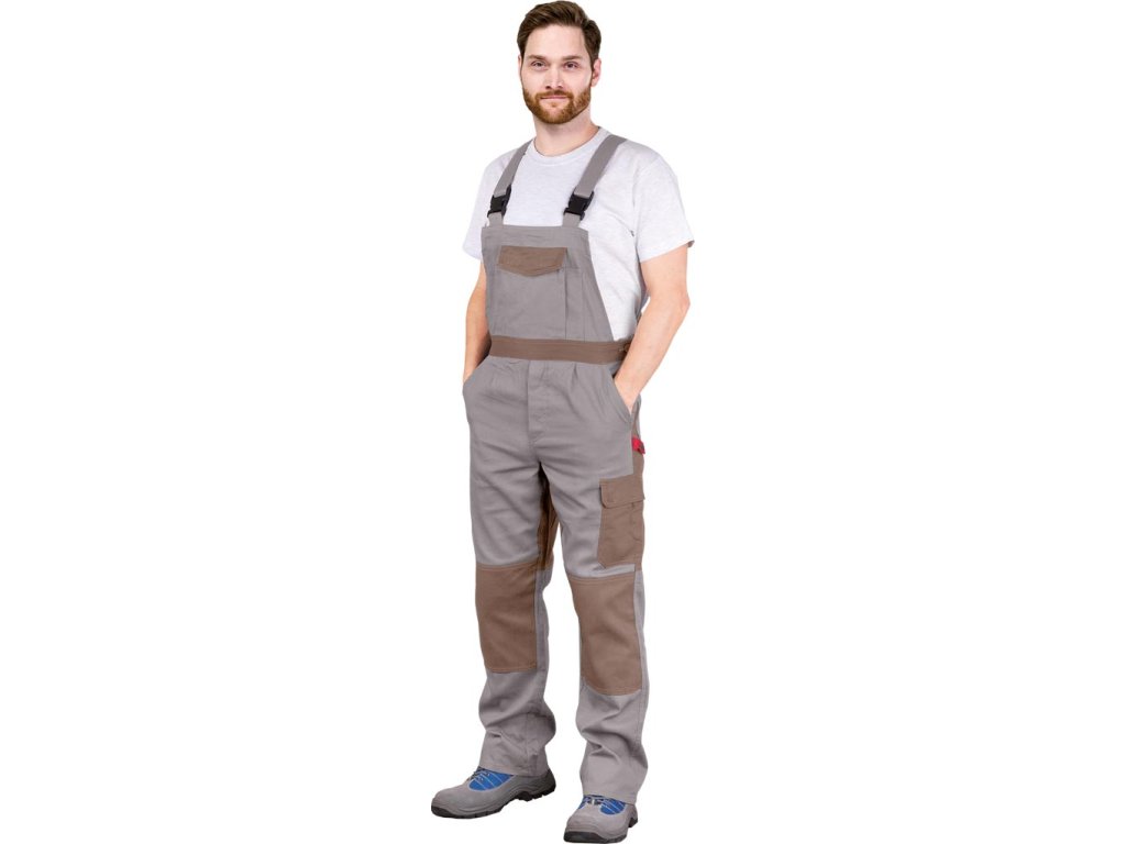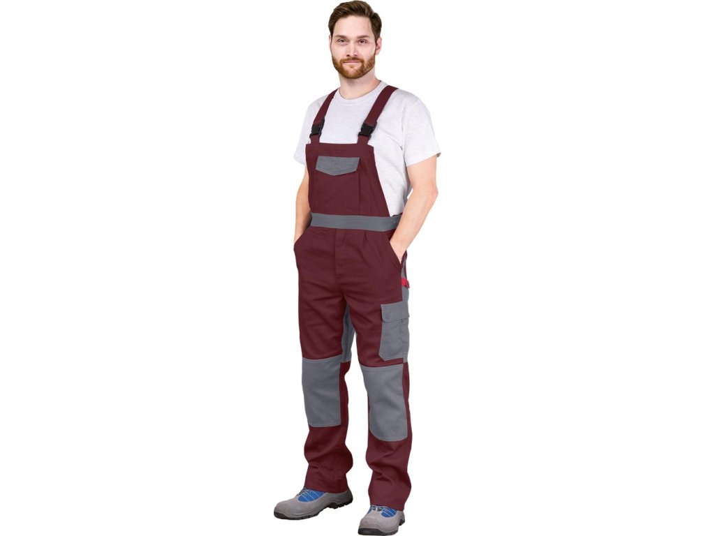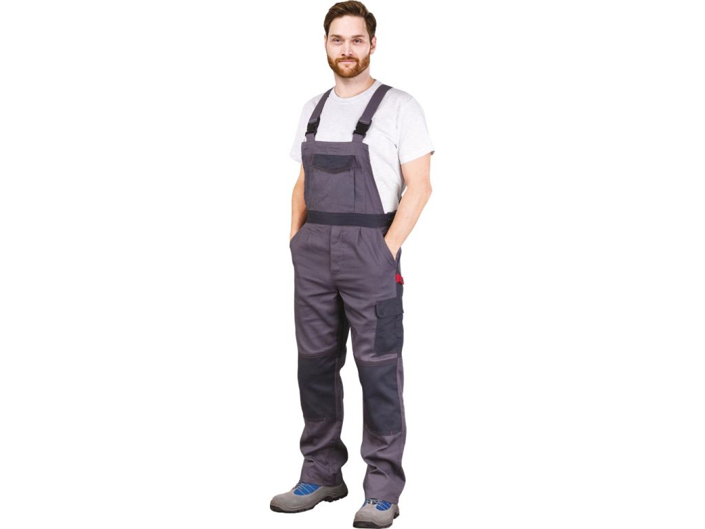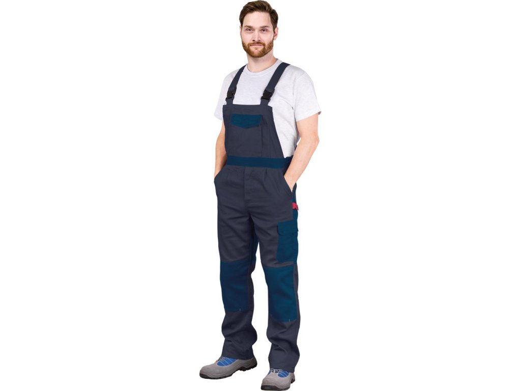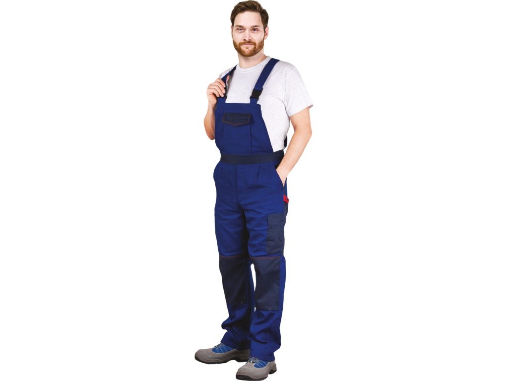 Ochranné montérky BOMULL. - Látka: 100% bavlna - Hmotnosť: 260-270 g/m² - Šnúrka v páse a gombíky umožňujú nastavenie pre lepšie prispôsobenie - Prispôsobenie dĺžky trakmi - Šesť vreciek: dve bočné vrecká, dve zadné vrecká so zapínaním na suchý zips a dve na nohách - Tri ďalšie vrecká v hornej časti nohavíc, vrátane jedného so zapínaním na suchý zips - Veľký počet vreciek zvyšuje funkčnosť nohavíc - Vrecká na podkolienky na kolenáchDodatočné parametre