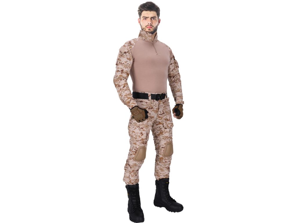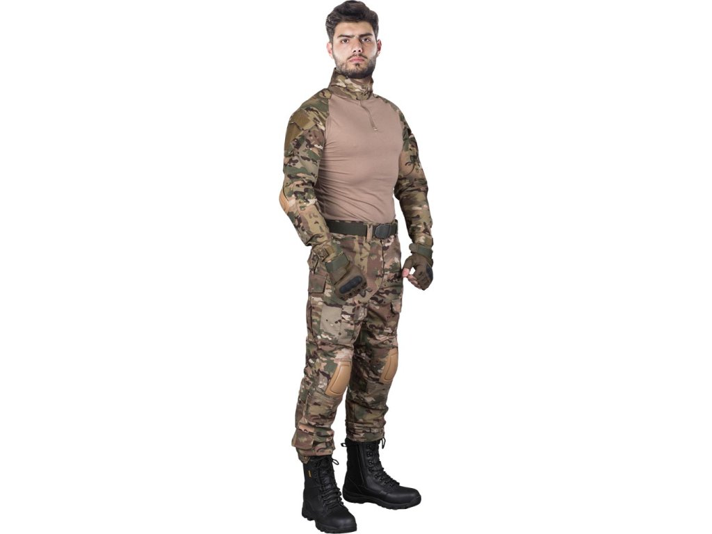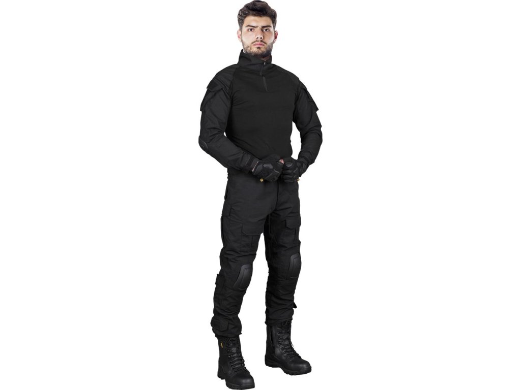 Ochranný odev Tactical Guard pozostávajúci z bundy a nohavíc do pása. - Materiál: 65% polyester, 35% bavlna - Hmotnosť: 210-220 g/m² - Stredná vrchná časť súpravy je vyrobená z 65% bavlny, 35% polyesterového úpletu s gramážou 180 g/m² - Mikina: Zapínanie na zips, stojačik, manžety na suchý zips, dve vrecká na suchý zips na rukávoch - Nohavice v páse: zapínanie na suchý zips a zips, nastaviteľný pás a kolená pre lepšie prispôsobenie, viacero vreciek, manžety na suchý zips - Obsahuje chrániče kolien a lakťov vyrobené z EVA - Navrhnuté pre vojenských nadšencov, motocyklistov, jazdcov na mopedoch, cestovateľov a fanúšikov paintballu - Ideálne pre bezpečnostné spoločnosti, lesníkov a rybárovDodatočné parametre
