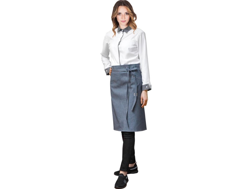 Ochranná zástera z džínsoviny. - 100% bavlna - Rozmery: šírka 90 cm, výška 60 cm - Zaväzovanie vzadu pre lepšie prispôsobenie - Štyri vrecká na vonkajšej strane - Možno prať v práčke do 40°CDodatočné parametre