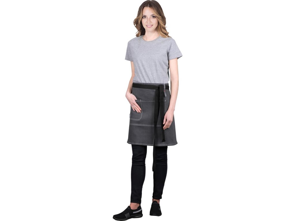 Ochranná zástera z džínsoviny. - Materiál: 19% polyester, 79% bavlna, 2% elastan - Gramáž: 380 g/m² - Zaväzovanie vzadu na dva popruhy pre lepšie uchytenie - Veľkosť 78x48 cm má dve vonkajšie vrecká - Veľkosť 90x75 cm má jedno vrecko na vonkajšej strane všité v páse - Dve pútka na opasok na pripevnenie popruhov - Prídavné pútko na opasok na handričku - Odnímateľné popruhy vďaka patentkám - Možno prať v práčke do 30°CDodatočné parametre