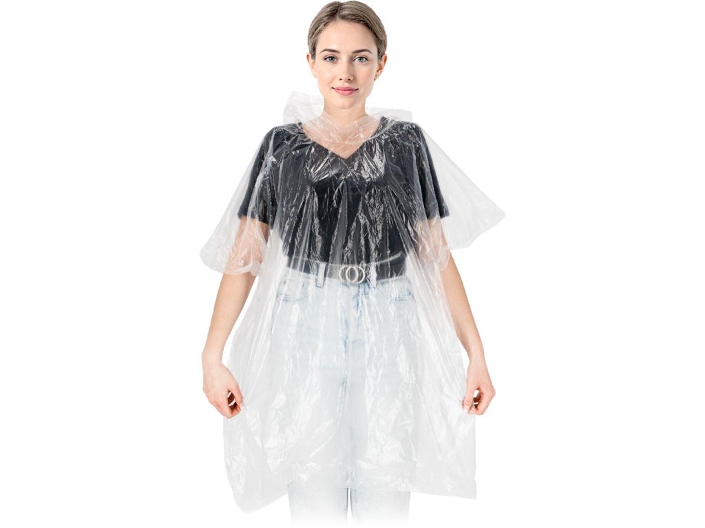 Pláštenka v štýle ponča. - 100% polyetylén - Rozmery: 100x90 cm - Hrúbka: 0,025 mm - Integrovaná kapucňa poskytuje ochranu hlavy pred dažďom a vetrom - Ideálne do vlhkého počasia, kedy je nevyhnutná voľnosť pohybu - Dá sa použiť ako núdzová pláštenka uložená v odkladacej skrinke auta alebo cyklistickej taške - Každá položka je jednotlivo zabalená vo vreckuDodatočné parametre