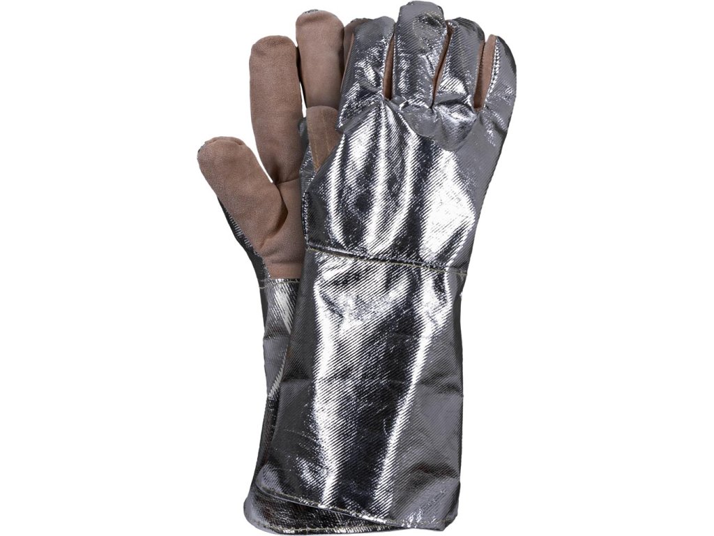 Ohňovzdorné, päťprstové ochranné rukavice. - Rukoväť vyrobená z kombinácie hovädzej štiepenky a nehorľavej vlny - Chrbát a manžeta z metalizovanej sklenenej tkaniny a podšívka spomaľujúca horenie - Navrhnuté tak, aby chránili ruky pracovníkov pred horúcim prostredím, ako sú plamene, postriekanie roztaveným kovom, postriekanie troskou, intenzívne sálavé teplo, kontakt s horúcimi predmetmi a konvekčné teplo - Dostupné vo veľkosti 11 - Dostupné v dvoch dĺžkach: 43 cm a 55 cm - Vhodné na použitie v priestoroch, kde je riziko iskier - Odoláva kontaktnému teplu do 250°C - Vyhovuje normám EN ISO 21420, EN388 (úrovne odolnosti: 3 X 1 X) a EN407 (úrovne odolnosti: 4 2 2 4 4 2)Dodatočné parametre