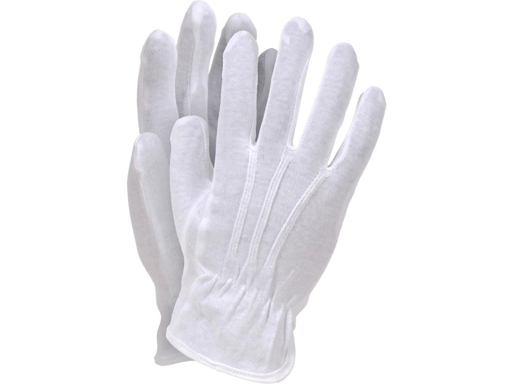 Ochranné rukavice. - 100% bavlnený úplet - Tri švy na vonkajšej strane - Jemne zhromaždené na zápästí - Vysoko priedušné, umožňujúce pokožke dýchať - Vďaka vlastnostiam bavlny sú statické a pohodlné na nosenie - Dokonale padne do ruky a zaisťuje pevný pocit z držaného predmetu - Používa sa, keď sa vyžaduje správna prezentácia rúk a vzhľad, napr. na nosenie transparentov - Určené pre prácu vyžadujúcu zručnosť - Perfektné ako vložka pod iné rukaviceDodatočné parametre