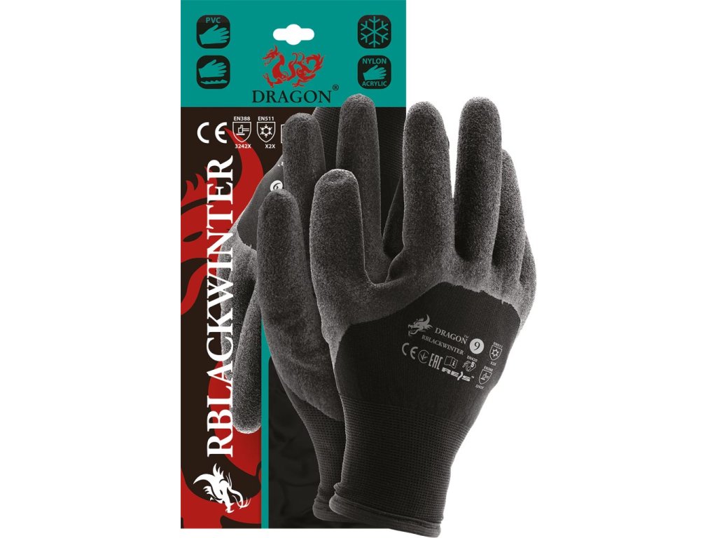 Izolované ochranné rukavice.- Dvojvrstvový úplet: 100% nylon (rozmer 15) zvonka, 100% akrylová slučková priadza (rozmer 7) zvnútra
