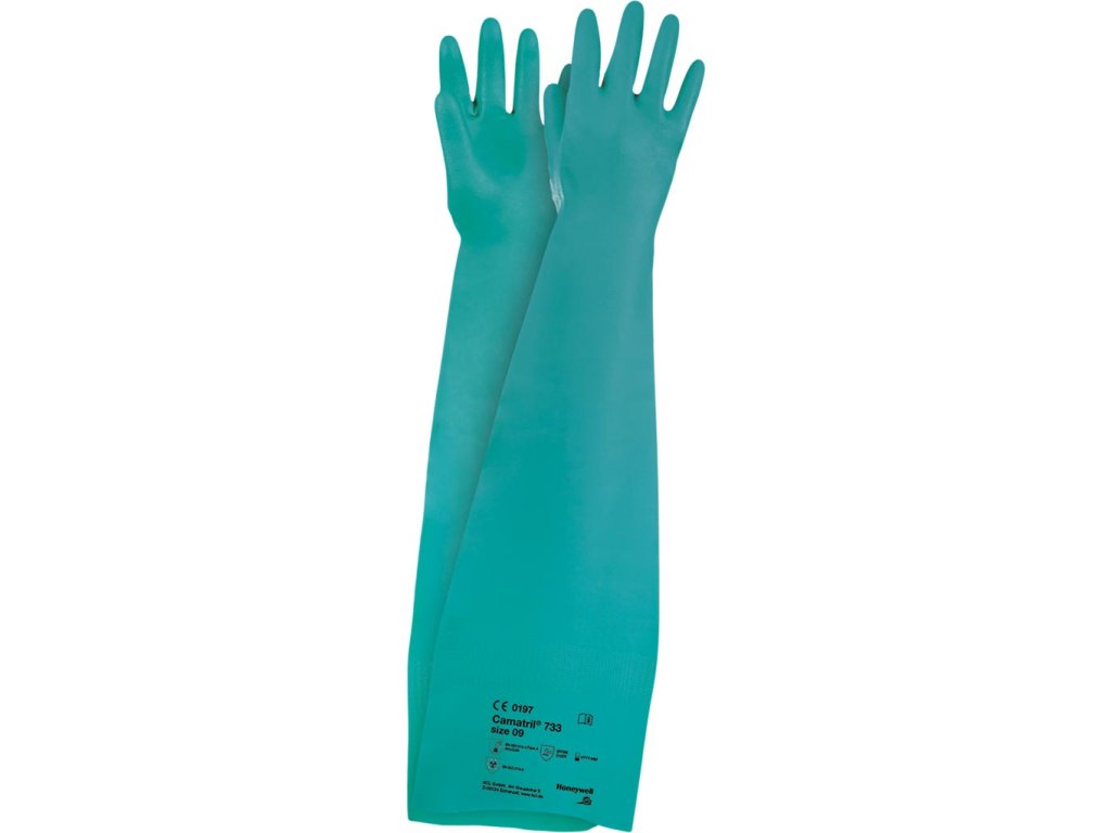 CAMATRIL 733 ochranné rukavice. - Vyrobené z nitrilu - Dlhá manžeta - Vhodné pre použitie v poľnohospodárstve a záhradníctve, laboratórne práce, automobilový priemysel, petrochemický priemysel, lakovne, potravinársky priemysel, chemický priemysel, čistenie a údržba a spracovanie epoxidových živíc - Vynikajúci hmatový pocit, dobrá tepelná odolnosť - Vysoká mechanická pevnosť - AQL < 0,65 - Bez silikónu - Dobré antistatické a elektrostatické vlastnosti - Schválené pre styk s potravinami - Vyhovuje normám EN388 (úrovne odolnosti: 3 1 0 2 X), EN ISO 374-1 (AKLO J M, TYP A), EN ISO 374-5 a EN420Dodatočné parametre