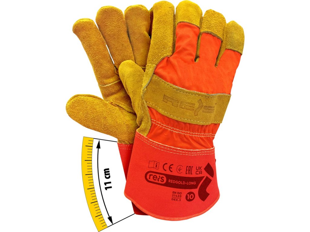 - Úchopová časť vyrobená z dodatočne vystuženej hovädzej kože, vďaka čomu sú rukavice odolnejšie voči oderu a opotrebovaniu