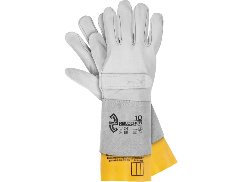 Ochranné rukavice určené na použitie s elektricky izolačnými rukavicami.- Celozrnná hovädzia koža s byvolou štiepanou manžetou