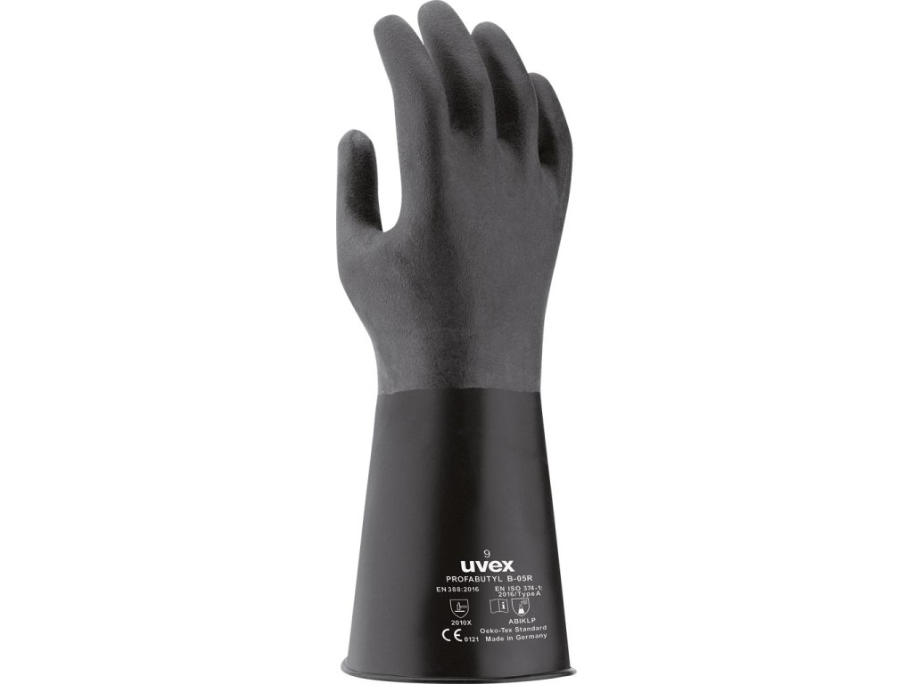 Ochranné rukavice PROFABUTYL. - Vyrobené zo 100% butylovej gumy - Dĺžka: cca. 35 cm - Hrúbka: cca. 0,50 mm - Poskytuje ochranu najmä pred estermi a ketónmi, aldehydmi, nasýtenými soľnými roztokmi, kyselinami a zásadami - Nepriepustné pre vodné pary, plyny a toxické látky - Flexibilné, s dobrou priľnavosťou aj pri nízkych teplotách - Vyhovuje normám EN388 (úrovne odolnosti: 2 0 1 0 X), EN ISO 374-1 (AB I K L N O T, TYP A), EN16350 a EN ISO 21420Dodatočné parametre
