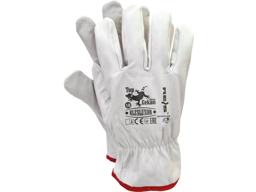 Ochranné rukavice vyrobené z hovädzej kože.- Biela celozrnná hovädzia koža