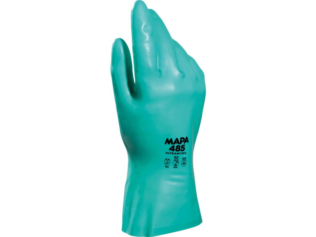 ULTRANITRIL 485 ochranné rukavice. - Vyrobené z nitrilu - Štandardná chemická ochrana - Vločkovaný interiér - Reliéfny exteriér - Dĺžka: 31 cm - Hrúbka: 0,34 mm - Flexibilné s vysokou priľnavosťou - Používa sa na spracovanie dielov v automobilovom priemysle, autoservise, drevárskom a dokončovacom spracovaní a v chemickom priemysle na výrobu farieb a lakov - Odporúča sa pre používateľov prípravkov na ochranu rastlín - Chráni pred pesticídmi - Vyhovuje normám EN388 (úrovne odolnosti: 3 1 0 1 X), EN374-1 (J K O P T, TYP B), EN374-5, ISO 18889 a EN ISO 21420Dodatočné parametre