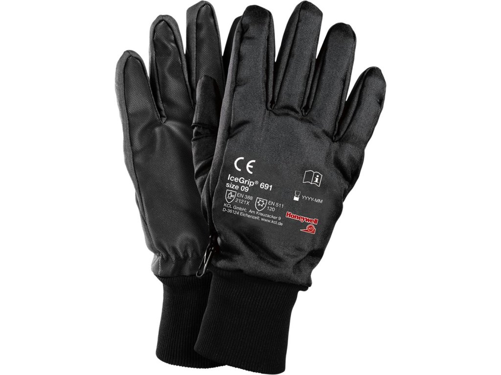 Ochranné rukavice ICEGRIP 691. - Vyrobené z Thinsulate, PVC a nylonu - Tepelná vložka Thinsulate - Odolné voči nízkym teplotám až do -50°C - Protišmykový, tvarovaný povrch zaisťuje bezpečné uchopenie na mokrom povrchu - Hydrofóbne vlastnosti, ktoré inhibujú absorpciu vody - Veľmi pohodlné nosenie a dlhá životnosť - Schválené pre styk s potravinami - Vyhovuje normám EN388 (úrovne odporu: 2 1 2 1 X), EN511 (úrovne odolnosti: 1 2 0) a EN420Dodatočné parametre