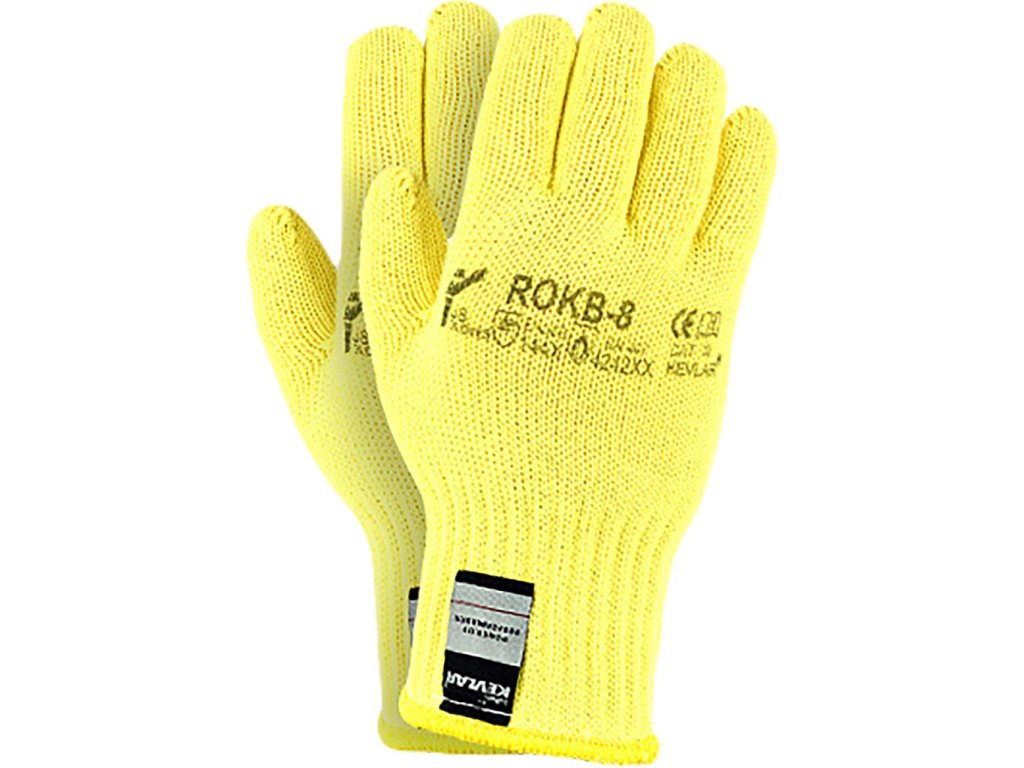 Pletené termo ochranné rukavice. - Bavlna - Vložka z prírodnej bavlny - Rebrované manžety - Bezproblémové - Odolné voči kontaktnému teplu do 250°C - Vysoký komfort - Vyhovuje normám EN420, EN388 (úrovne odolnosti: 1 4 4 X D) a EN407 (úrovne odolnosti: X 2 X X X X)Dodatočné parametre