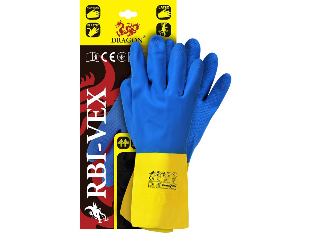 Ochranné rukavice.- Vyrobené z 80% latexu, 20% neoprénu
