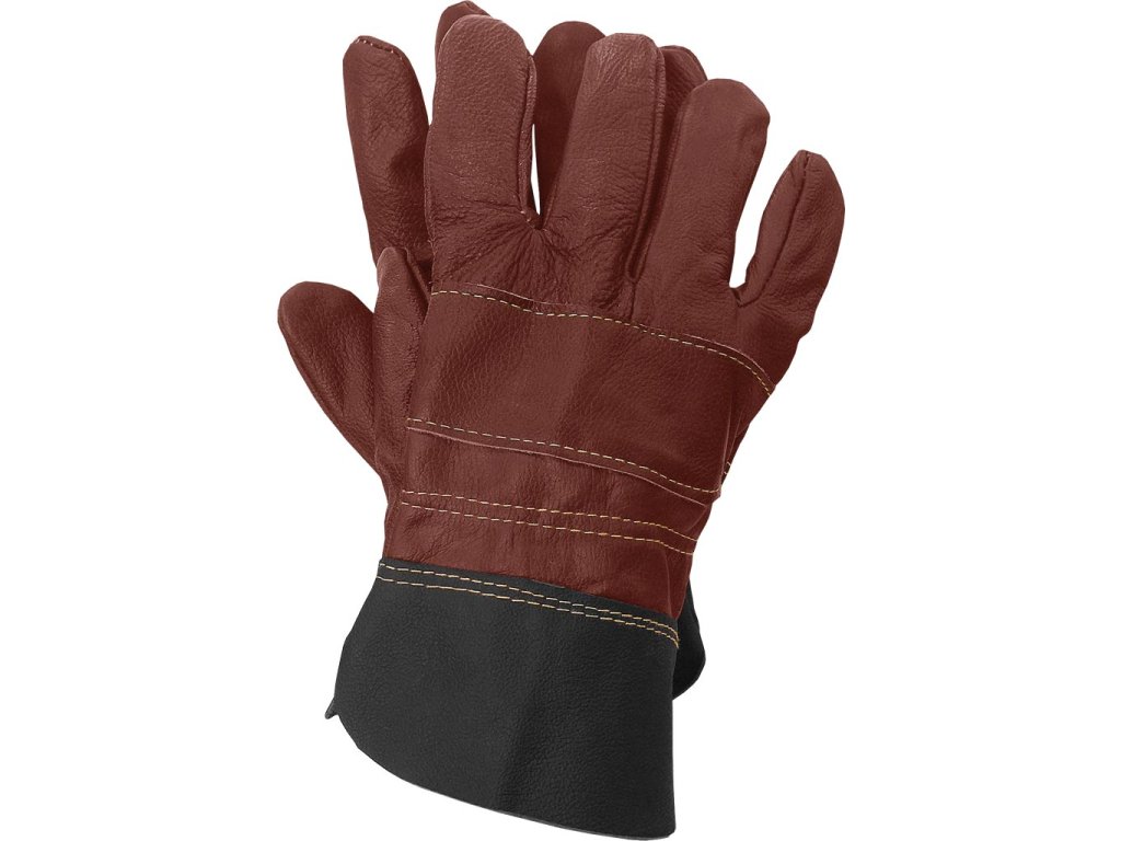 Ochranné rukavice vyrobené výhradne z tmavej kože.- Celozrnná hovädzia koža s prešívaním na dlani
