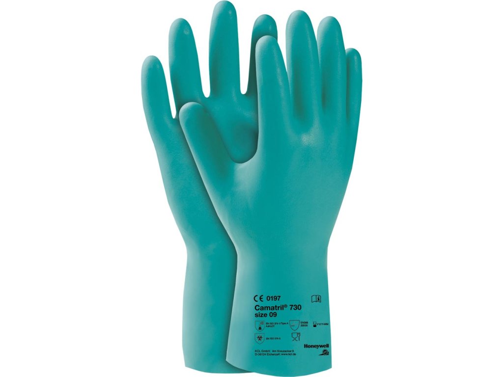 Camatril 730 ochranné rukavice. - Vyrobené z nitrilu - Dlhá manžeta - Vhodné pre použitie v poľnohospodárstve a záhradníctve, laboratóriách, automobilovom priemysle, petrochemickom priemysle, lakovniach, tlačiarňach, potravinárskom priemysle, chemickom priemysle, čistenie a údržba a spracovanie epoxidových živíc - Vynikajúci hmatový pocit, dobrá tepelná odolnosť - Vysoká mechanická pevnosť - Bez silikónu - Schválené pre styk s potravinami - Dobré antistatické a elektrostatické vlastnosti - Bez alergénov, ako sú tiuramy a tiomočoviny - Vyhovuje normám EN388 (úrovne odolnosti: 3 0 0 1 X), EN ISO 374-1 (T K L J A O, TYP A), EN ISO 374-5 a EN420Dodatočné parametre