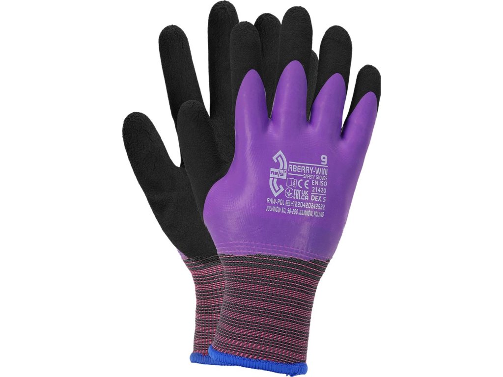 Izolované ochranné rukavice.- Dvojvrstvový úplet: 100% polyester (rozmer 13) zvonka, 100% akrylová slučková priadza (rozmer 7) zvnútra
